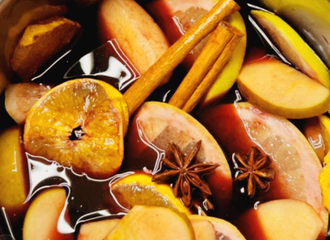 뱅쇼는 레드와인과 계피, 정향, 과일들을 넣어 끓여서 만들면 됩니다.